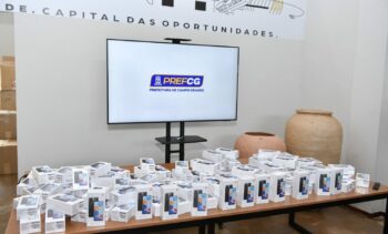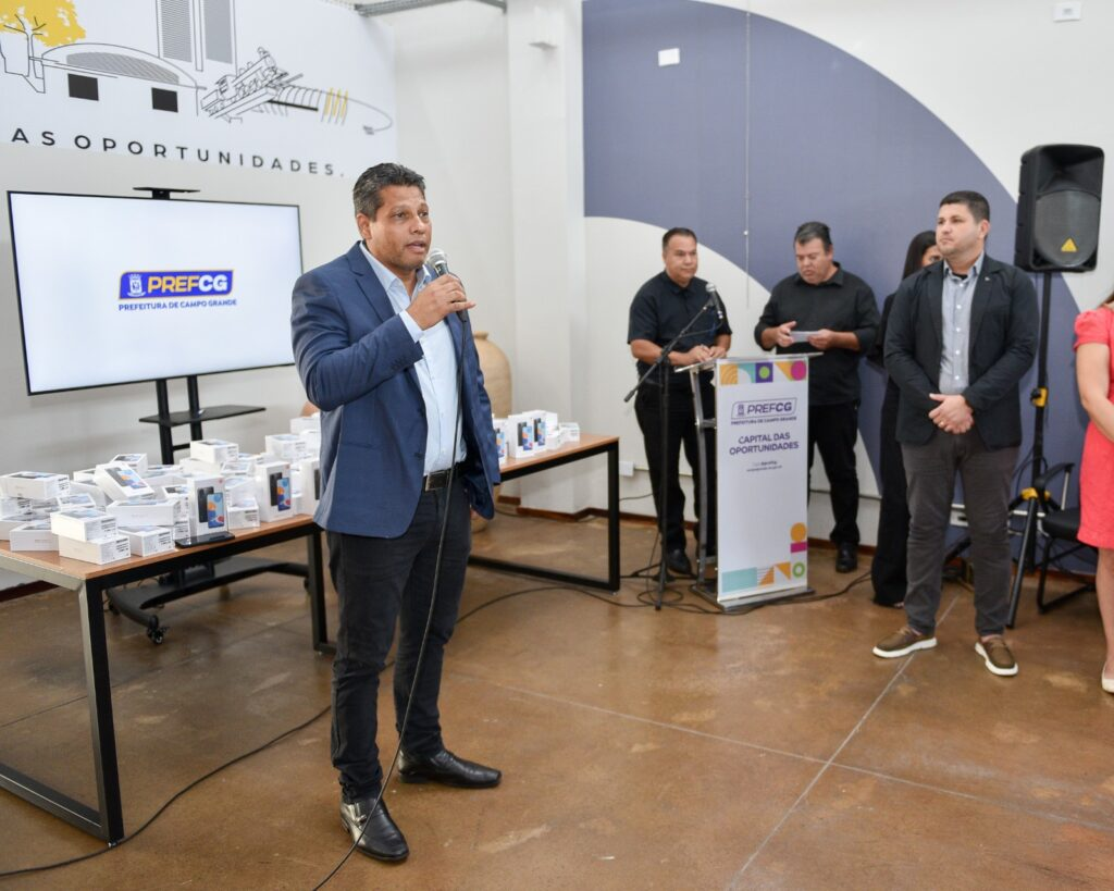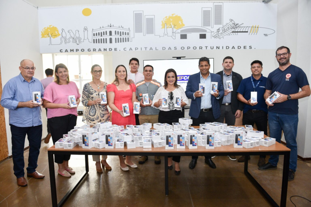A Prefeitura de Campo Grande recebeu nesta quinta-feira (19) 380 aparelhos de celulares doados pela Receita Federal. Os materiais serão utilizados para oferecer mais agilidade nos serviços prestados aos munícipes, como por exemplo na comunicação dos servidores da Guarda Civil Metropolitana, que realizam rondas nos bairros e nas escolas das sete regiões da cidade. A solenidade de entrega ocorreu no Parktec CG – Parque Tecnológico e de Inovação de Campo Grande e contou com a presença da prefeita Adriane Lopes e do delegado da Receita Federal, Zumilson Custódio da Silva.